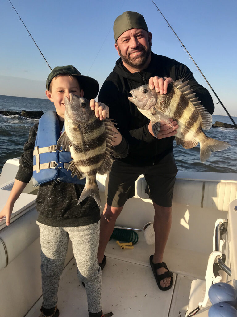 - Sheepshead: As the temperature begins to climb, you can expect sheepshead to be plentiful around reefs, rigs, and nearshore structures. These delicious fish are strong fighters, which makes them an outstanding challenge for beginner and advanced fishermen and women alike!